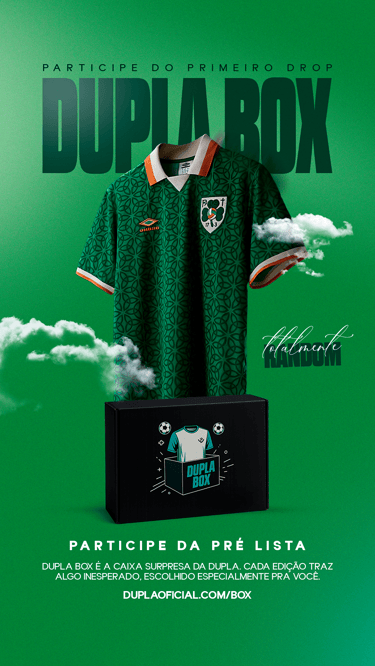 A DuplaBox é um serviço de assinatura para apaixonados por futebol, onde todo mês o assinante recebe uma camisa surpresa e pode escolher entre alguns estilos. O objetivo do projeto foi criar uma identidade visual que transmitisse versatilidade e variedade sem perder a sensação de qualidade e cuidado, além de preparar a comunicação para divulgação e venda no e-commerce.