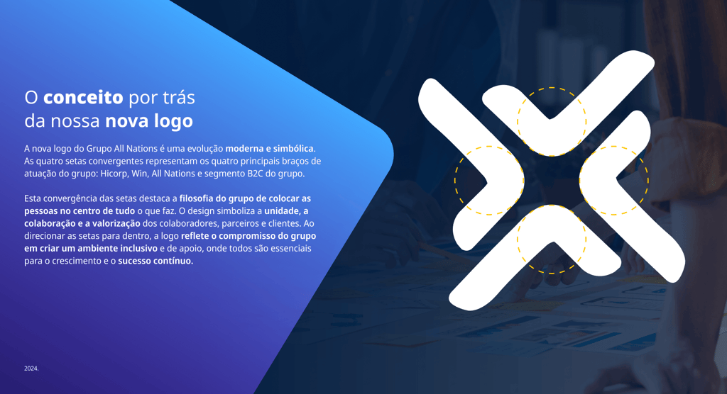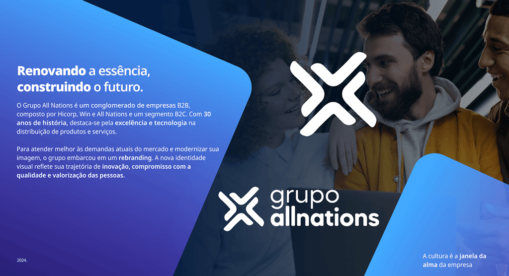 O projeto nasceu em um momento de transição importante para o Grupo All Nations. A empresa passava por mudanças estruturais, reposicionamento de mercado e uma revisão profunda de sua cultura interna. Era hora de alinhar o visual à nova essência — mais moderna, colaborativa e voltada para as pessoas.
