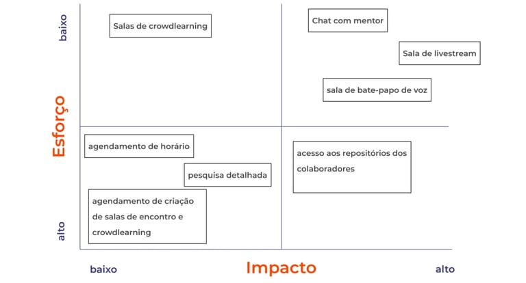 Matriz esforço x impacto para priorização de funcionalidades